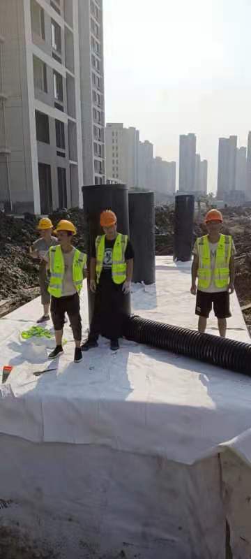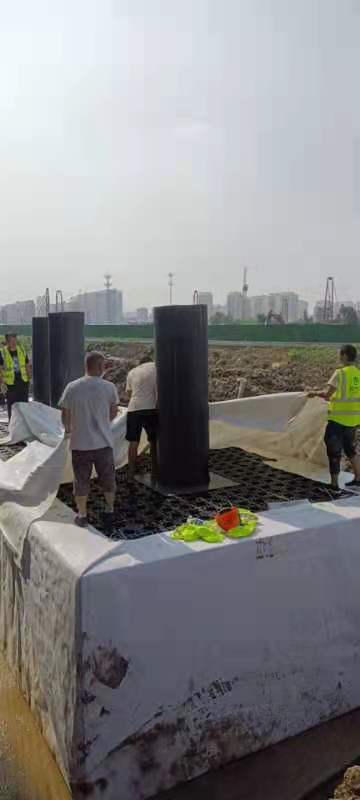該項目雨水回收系統(tǒng)采用地埋PP模塊組合水池的方式收集雨水,前期經(jīng)過截污掛籃、棄流過濾,后期通過地埋一體機(jī)過濾,消毒,最終使水質(zhì)達(dá)到規(guī)范標(biāo)準(zhǔn),用于廠區(qū)綠地的澆灑,景觀補(bǔ)水,道路沖洗。