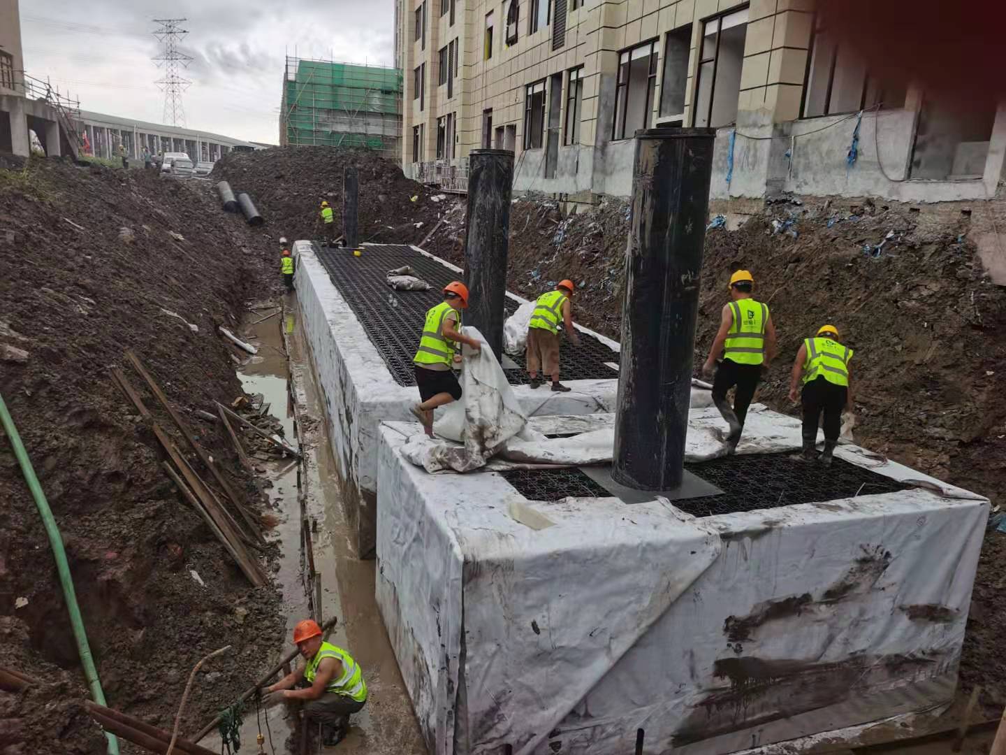 該項目雨水回收系統采用地埋PP模塊組合水池的方式收集雨水,前期經過截污掛籃、棄流過濾,后期通過地埋一體機過濾,消毒,最終使水質達到規范標準,用于廠區綠地的澆灑,景觀補水,道路沖洗。